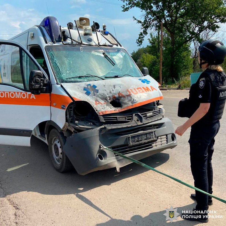 FPV-дрон влучив в автомобіль екстреної медичної допомоги на Куп’янщині, 16 липня 2025 року. Поліція Харківщини