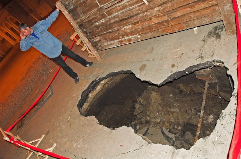 Як розповів геолог, порожнина заходила під фундаменти старої будівлі мерії.