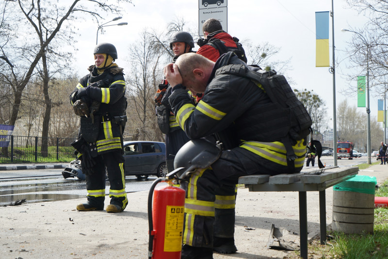 Рятувальники працюють на місці удару РФ у Шевченківському районі Харкова, 3 квітня 2026 року. Суспільне Харків/Олександр Манченко
