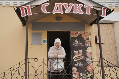 Жінка біля магазину в Чугуєві, 28 квітня 2026 року. Суспільне Харків/Вікторія Якименко