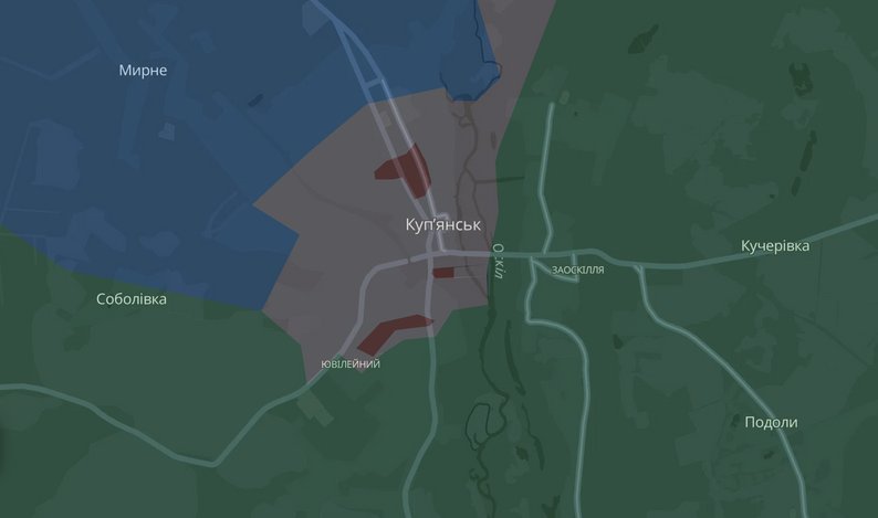 Купʼянськ на мапі, 16 грудня 2025 року. Deepstate