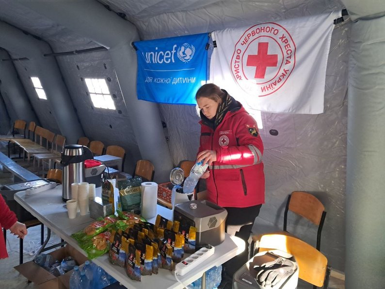 Зона зі смаколиками у мобільному наметі для обігріву в Холодногірському районі Харкова. Харківська обласна організація Товариства Червоного Хреста України/Facebook