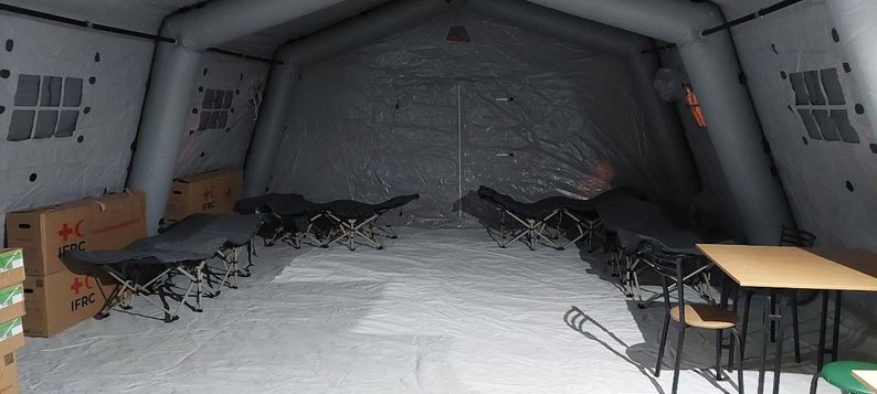 Спальні місця в мобільному наметі для обігріву в Холодногірському районі Харкова. Харківська обласна організація Товариства Червоного Хреста України/Facebook
