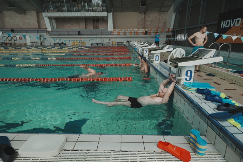 Заняття з учасниками розподіляють так, щоб приділити увагу кожному з ветеранів, говорить керівник спортивного комплексу Максим Бондарев. Біля басейну зробили інклюзивну роздягальню й душ.