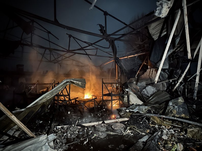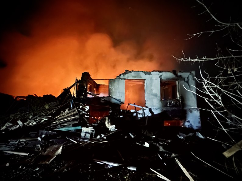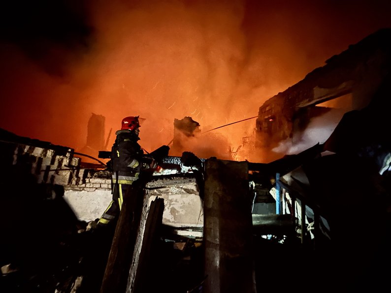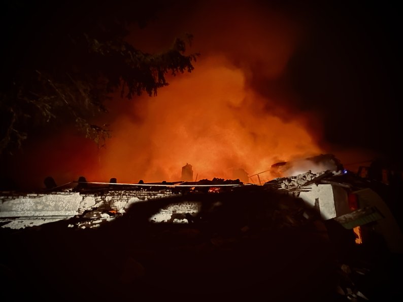 Пожежа у Чугуєві після російських ударів по місту, 7 листопада 2025 року. Суспільне Харків