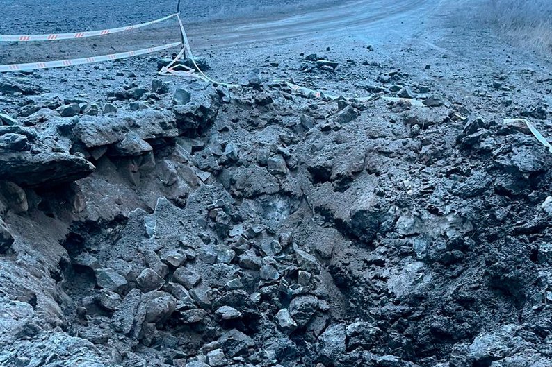 За її даними, через удар ракети у дорожньому покритті утворилася вирва.