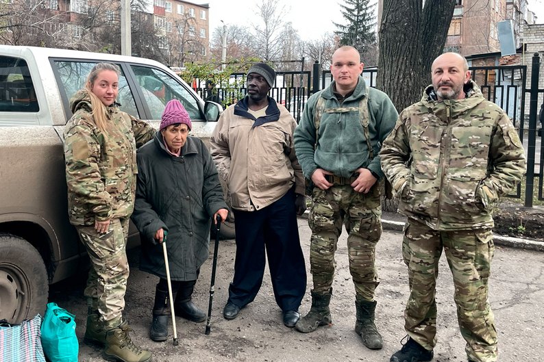 Поліцейські евакуювали з Куп’янського району літню жінку та громадянина Танзанії, який працював вчителем англійської в школі, листопад 2025 року. Поліція Харківщини
