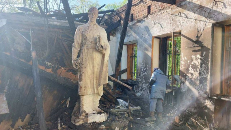 Зруйнований російським обстрілом музей Григорія Сковороди на Харківщині. Травень 2022 рік. Фото: t.me/synegubov