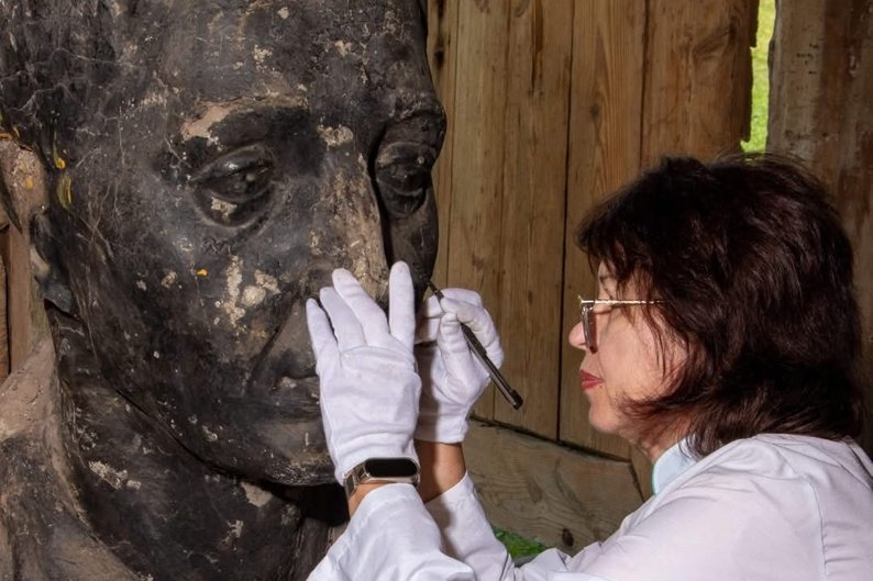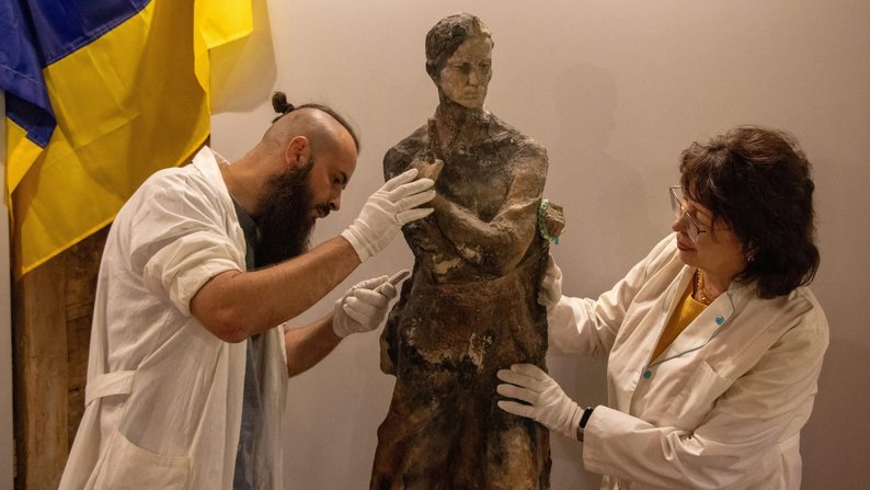"Серед відновлених експонатів — кілька бюстів Григорія Сковороди, зокрема один, створений у 1938 році. Один із бюстів Сковороди зібрали буквально по шматочках. Навіть фрагмент його вуха, який планували зліпити заново, вдалося знайти просто в шухляді поруч. Реставрація триває повільно й ретельно — наче складання пазла. Експерти кажуть, що повне відновлення може тривати десятиліттями", — повідомили у музеї.