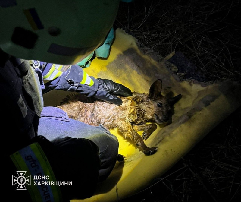 Врятований собака з пожежі у Харкові, 26 березня 2026 року. ДСНС Харківщини