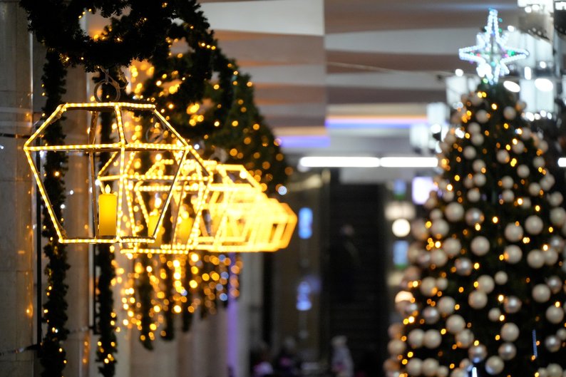 Новорічна ялинка та прикраси на станції метро “Університет” у Харкові, 6 грудня 2024 року. Суспільне Харків/Євген Гертнер