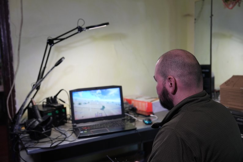 Новобранець вчиться керувати дроном на симуляторі. Суспільне Харків/Олександра Новосел