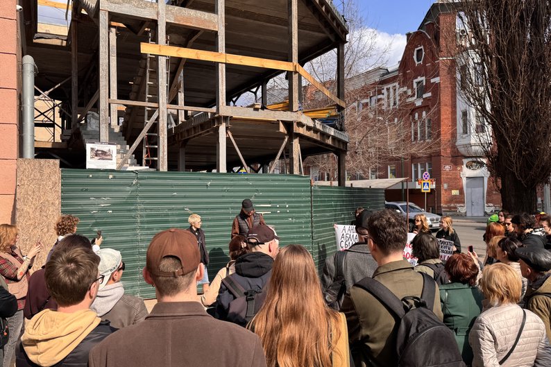 Акція протесту проти незаконного будівництва біля гуртожитку “Гігант” відбулася у Харкові, 23 березня 2025 року. Суспільне Харків/Валерія Ємець