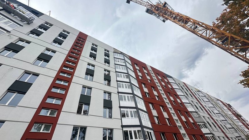 Ремонт багатоповерхівки на вулиці Бучми в Харкові, яка була пошкоджена російськими обстрілами у 2022 році, жовтень 2025 року. Харківська міська рада