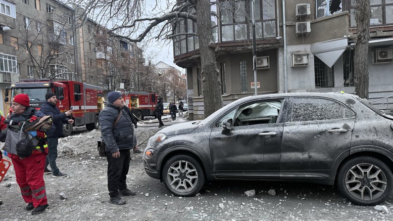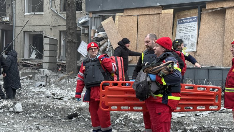 Медики прибули на місце удару по багатоповерхівці в Київському районі Харкова, 2 січня 2026 року. Суспільне Харків/Валерія ЄмецьДесятки будинків, десятки, бо, ви розумієте, це Сумська вулиця, Мироносицька вулиця. Тут дуже багато будинків. Ви ж бачите, які руйнації.