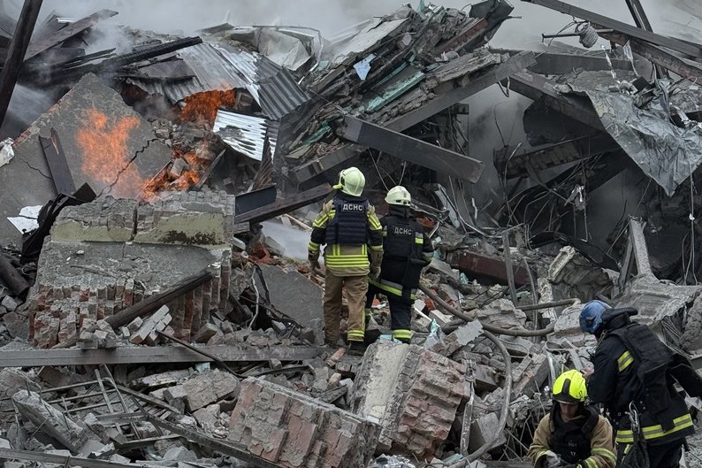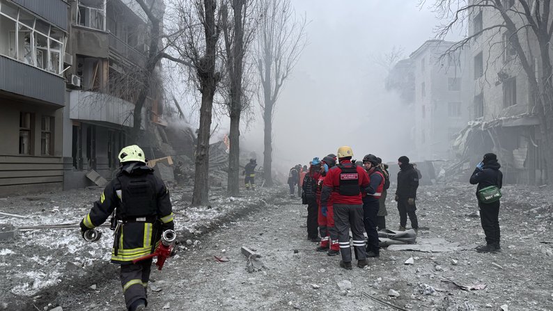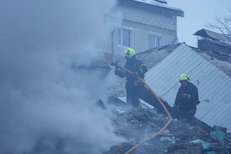 Рятувальники на місці російського удару по багатоповерхівці в Київському районі Харкова, 2 січня 2026 року. Суспільне Харків/Валерія Ємець