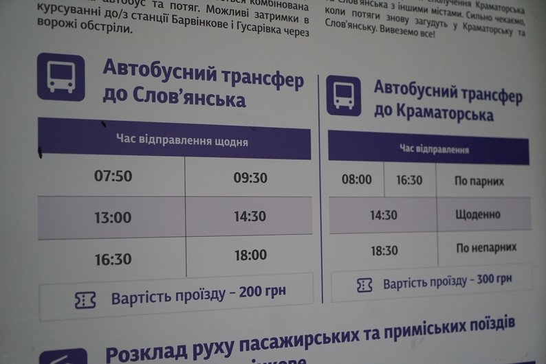 "З автовокзалу забираємо, потім на залізничний вокзал і сюди, на залізничний вокзал у Барвінкове. В основному всі або додому — як то кажуть, подивитися за своїм життям, що там залишилось. Або евакуюються. Виїжджають або приїжджають в гості — ті самі діти приїжджали до когось", — говорить водій.