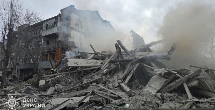 Росіяни вдарили двома ракетами “Іскандер” по центральній вулиці Харкова. Внаслідок удару повністю зруйнований п’ятиповерховий будинок, інший — значно пошкоджений.