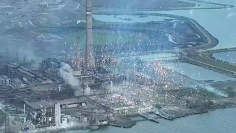 Територія “Азовсталі” у Маріуполі під російськими ударами, 14 травня 2022 року. Азовсталь Маріуполь 14 травня, фото: скриншот з відео Петра Андрющенка