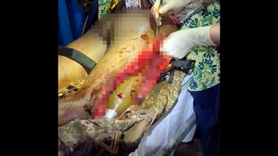 На Харківщині медики Другого медичного батальйону та сапери провели операцію 31-річному пораненому, в нозі якого була протитанкова граната. Вона перебувала під шкірою, а її вага складала близько двох кілограмів.
