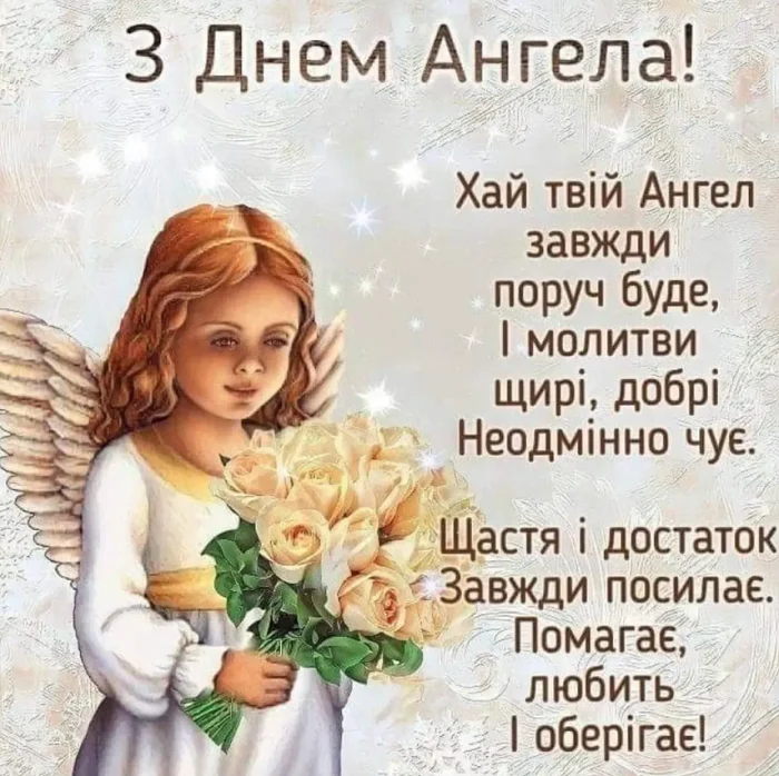 З Днем янгола Анни! Бажаю тобі ніколи не здаватися. Нехай твій янгол-охоронець допомагає тобі летіти, навіть тоді, коли твої крила опускаються вниз!