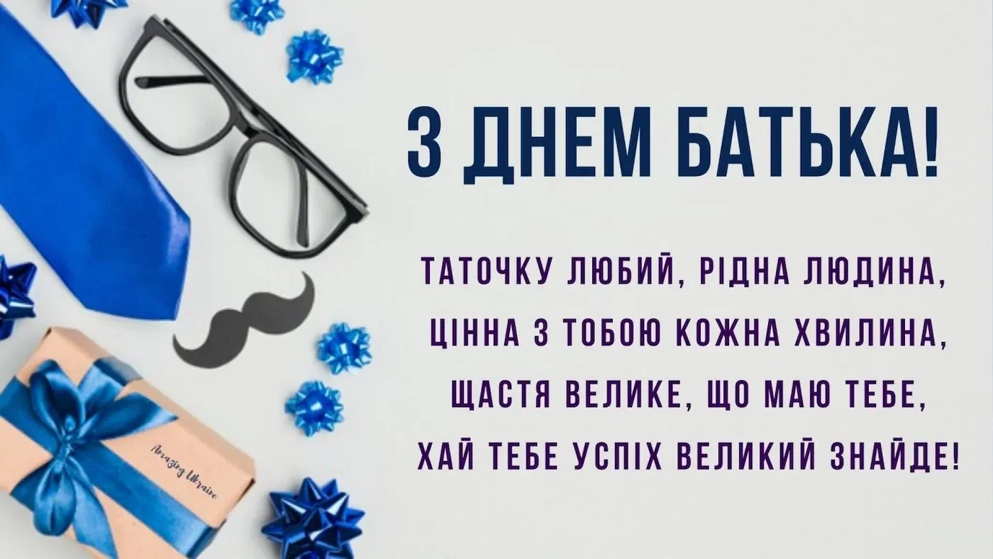 Милий тато, в це чудове свято – День батька – і будь-який інший день я тобі щиро бажаю радости серця, життєвих сил і простого життєвого щастя. Будь завжди молодий душею, міцний здоров’ям і сповнений енергії та бадьорості. Ти – мій головний приклад для наслідування, і я хочу, щоб ти завжди був поруч. Люблю тебе!