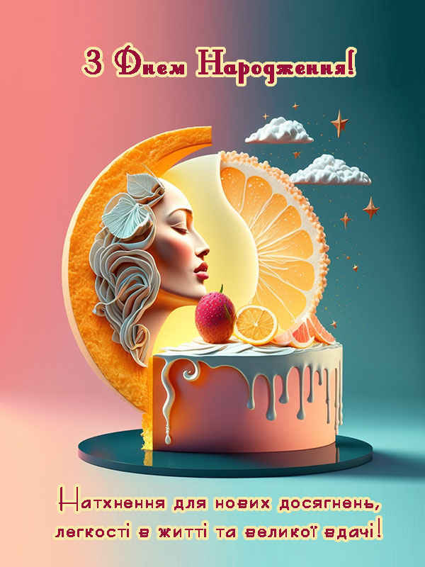 Вітаю з Днем народження! Бажаю, щоб кожна мить вашого дня була сповнена радістю, посмішками та незабутніми емоціями! Нехай настрій буде відмінним, і ви завжди знаходитемете натхнення і силу для досягнення великих злетів і неймовірних досягнень. Бажаю миттєвого творчого розквіту, благополуччя, оптимізму і гармонії. Нехай ваші мрії та бажання збуваються, а кожен день буде для вас значущим, барвистим і результативним.