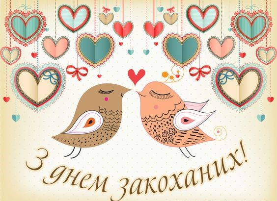 З Днем святого Валентина! Нехай цей святковий день буде сповнений радості та любові, і виконання всіх бажань! Бажаю всіх благ, щастя та злагоди, позитивного настрою та удачі!