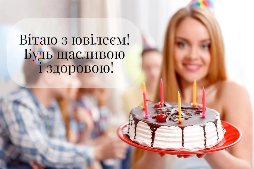 До тебе летить наше щире привітання з ювілеєм та величезна кількість добрих побажань! Бажаю залишатися такою ж яскравою, молодою та неперевершеною, як і нині. Хай щастя й радість завжди супроводжують твої кроки!