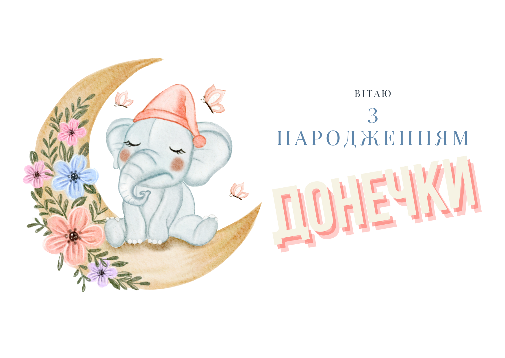 Надсилаємо вам свої найщиріші привітання з народженням донечки! Нехай ця маленька дівчинка приносить вам неймовірну радість та щастя. Нехай вона росте сильною, здоровою та розумною, завжди оточена вашою любов’ю та піклуванням. Бажаємо вам багато незабутніх моментів разом з вашою принцесою, що додасть нових кольорів у ваше життя! Виростіть донечку доброю, розумною та сміливою – справжньою українкою!