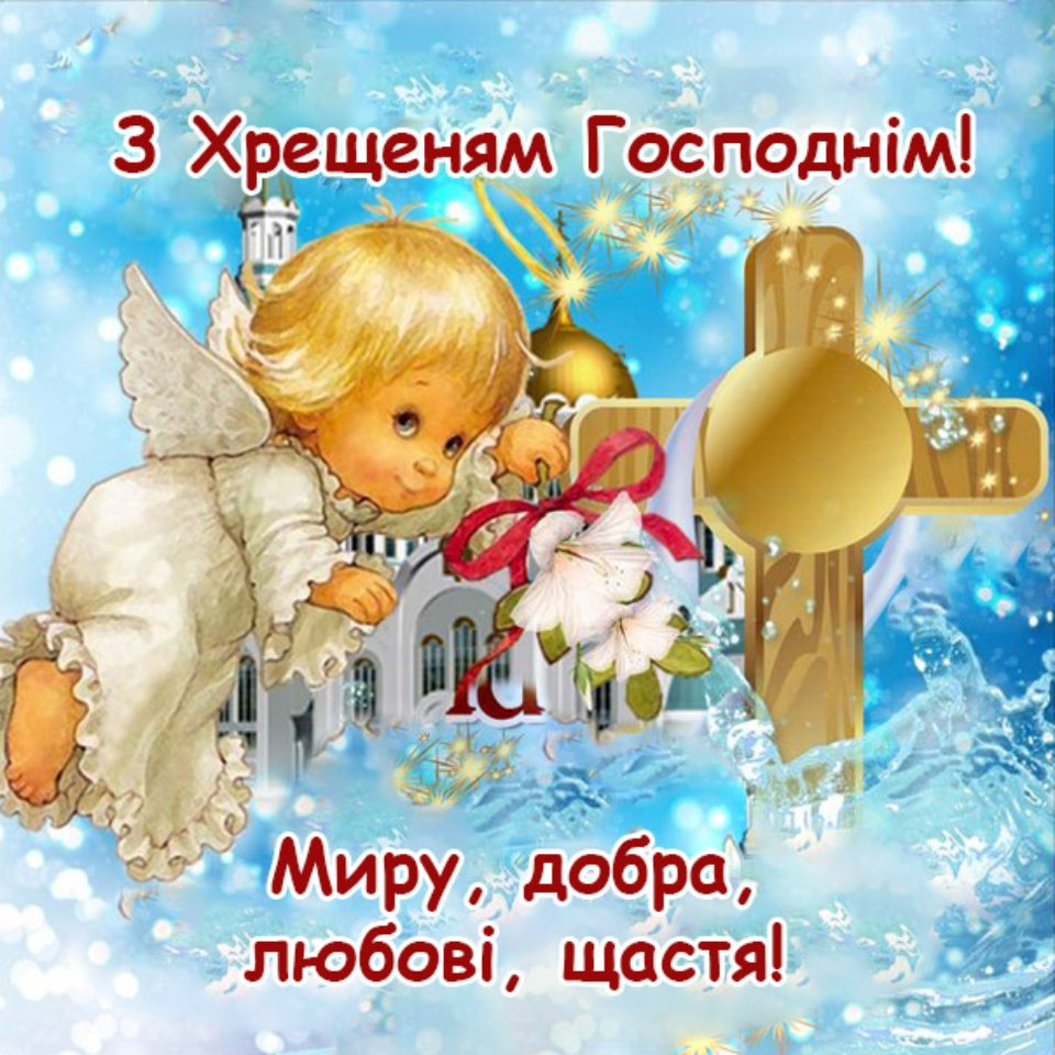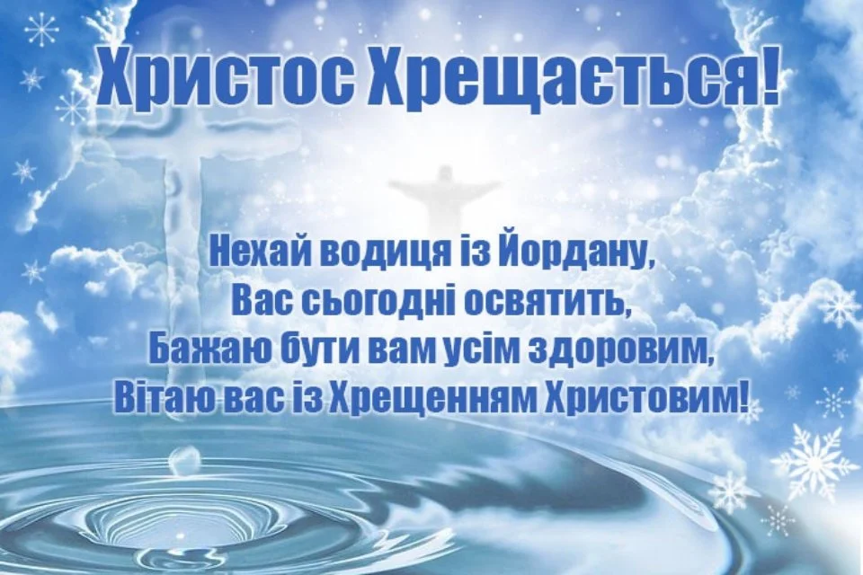 Вітаю з Хрещенням Господнім! Нехай Дух Святий оберігає вас і благословить на добрі справи, а крапельки кришталевої освяченої води, зміцнять віру, надію, любов, і, дадуть впевненості в завтрашньому дні!