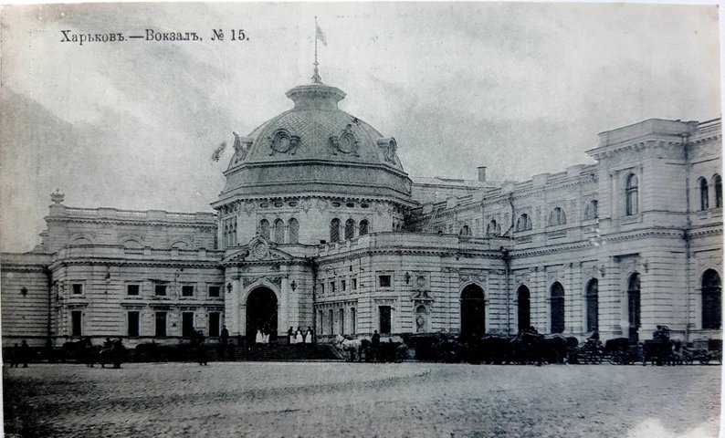 Вокзал у Харкові на початку ХХ століття, зображення з поштової листівки. Суспільне надбання
