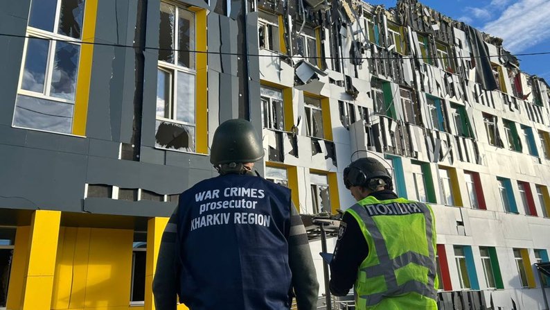 Навчальний заклад у Чугуєві, пошкоджений внаслідок російської атаки, 12 жовтня 2025 року. Прокуратура України