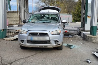 Автівка, яка була пошокджена внаслідок удару по АЗС у Богодухові, 20 квітня 2026 року. Поліція Харківської області