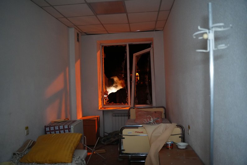Пацієнтів лікарні, що внаслідок удару авіабомби РФ по території медичного закладу у Харкові, перевели у вцілілий корпус, 13 жовтня 2025 року. Суспільне Харків/В’ячеслав Мавричев