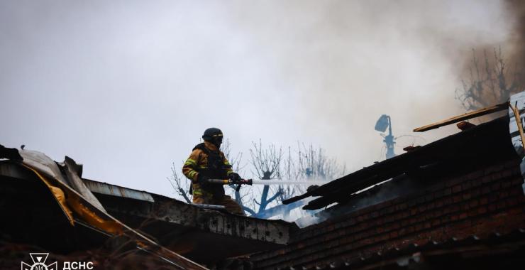 “Горіли конструктивні елементи складської будівлі та допоміжної споруди на території цивільного виробничого підприємства. Пошкоджені поруч розташовані житлові будинки та інші будівлі”, — повідомили у ДСНС.