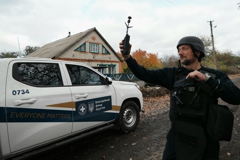 Член евакуаційної команди перевіряє безпекову ситуацію за допомогою дрон-детектора. Суспільне Харків/вікНаскільки мені відомо, більшість з них (родин, — ред.) повністю розуміє ситуацію, самостійно або згодні евакуюватися найближчим часом. Є перелік родин — він, на щастя, не дуже великий, з якими, наприклад, ювенальна поліція і психологи проводять окрему роботу стосовно того, щоб переконати їх виїхати найближчим часом.