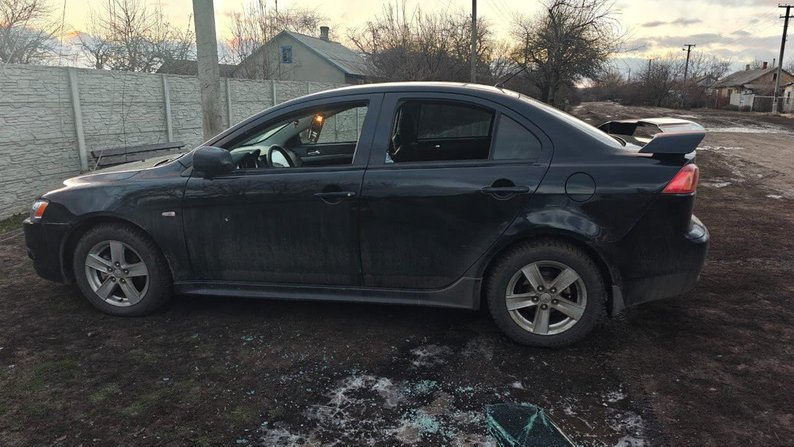 Автівка після влучання дрона у Зарічному Чугуївського району, 13 грудня 2025 року. Поліція Харківщини