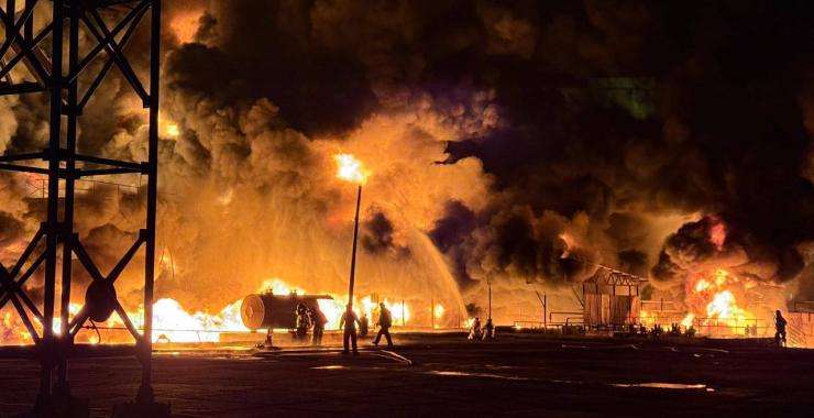 Внаслідок удару зайнялись резервуари з паливом. Підрозділи ДСНС працюють на місці. Станом на 12:00 пожежу не загасили.
