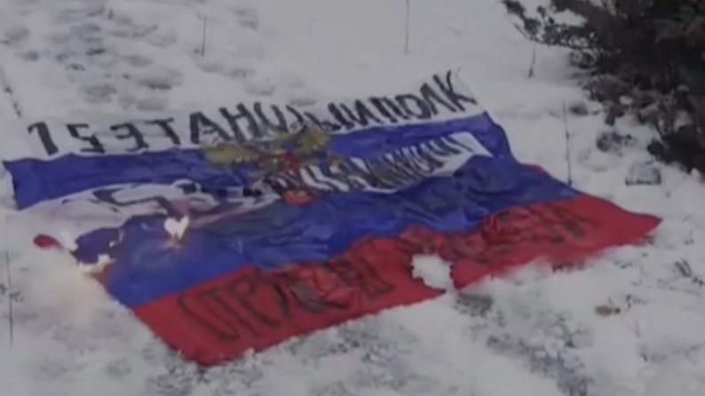 Бійці 43-ї окремої механізованої бригади спалили російський прапор біля Куп’янська-Вузлового, січень 2026 року. 43-я окрема механізована бригада