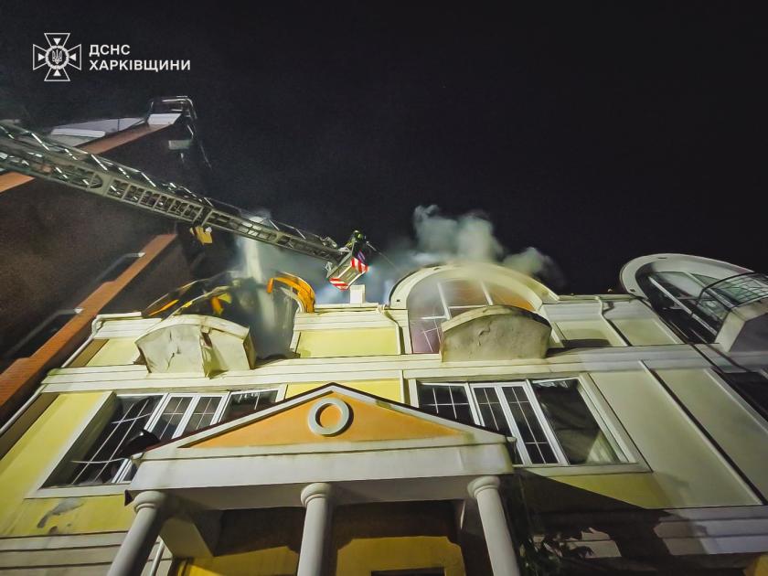 “Горів дах 6-поверхового недобудованого будинку на площі 1000 м кв., конструктивні елементи господарчої споруди площею 10 м кв., три ангари на території цивільного підприємства на загальній площі 1500 м кв”, — розповіли у ГУ ДСНС Харківської області.