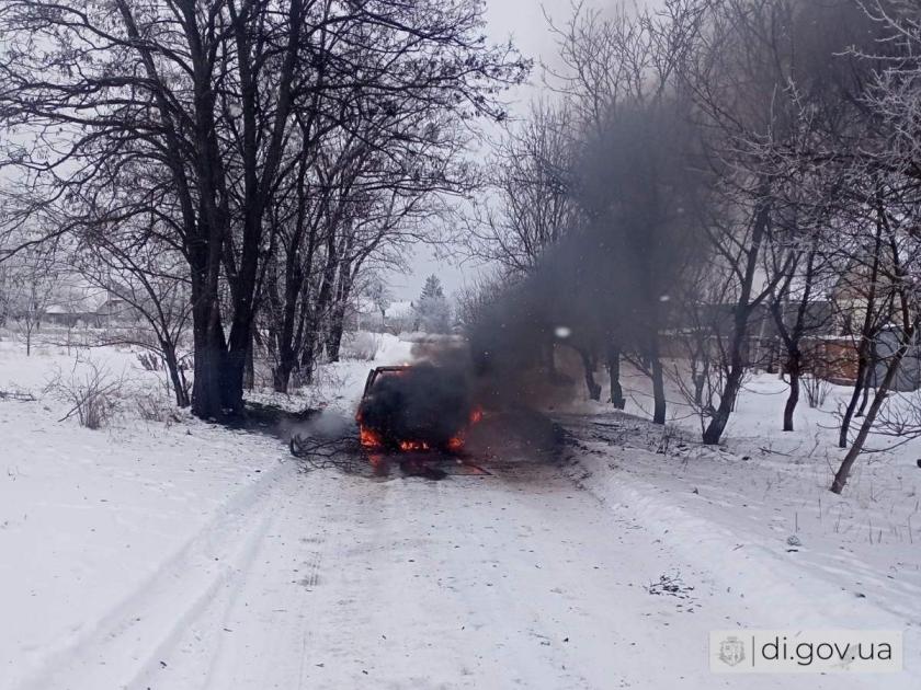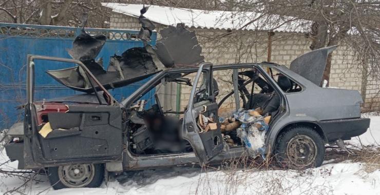 Дрон атакував автомобіль в Руській Лозовій. Фото: Дергачівська МВА