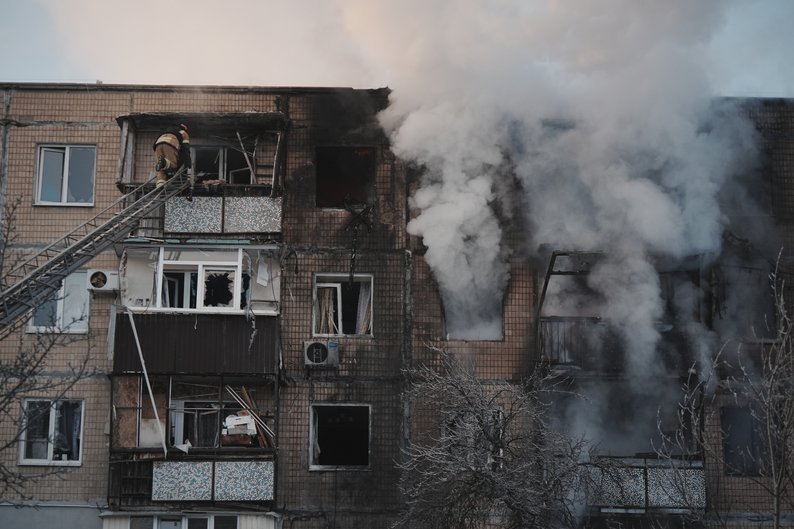 Пожежа в будинку, в який влучив російський БпЛА в Салтівському районі Харкова, 3 лютого 2026 року. Суспільне Харків/Вікторія Якименко