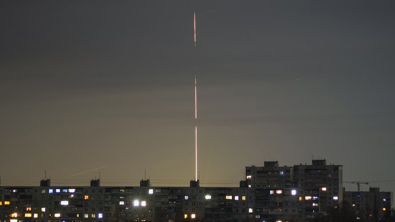 Ілюстративне фото. Пуск російської ракети по Україні. Військові РФ запускають ракету по Україні з Білгородської області пізно ввечері 13 листопада 2022 року. Фото: AP