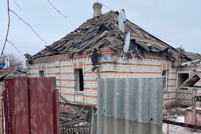 Пошкоджений будинок внаслідок російської атаки на Лозову вночі 12 лютого 2026 року. Харківська обласна прокуратура