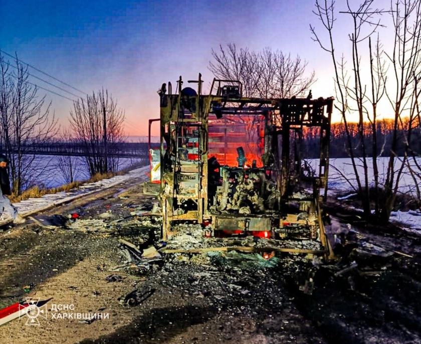 “Коли рятувальники прибули допомогти людям та загасити вогонь, ворог цілеспрямовано атакував дроном пожежний автомобіль. На щастя, надзвичайники не постраждали — вони перебували в укритті. Однак пожежна машина знищена повністю”, розповіли у ДСНС Харківщини.