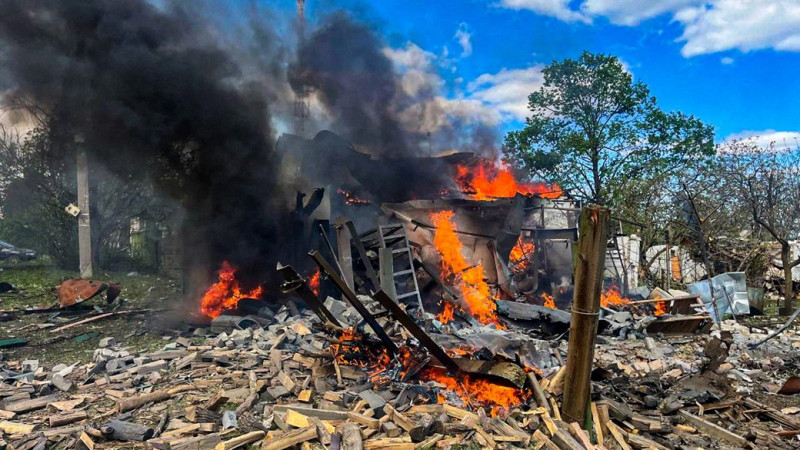 "Керована бомба влучила у приватний будинок, внаслідок чого виникла пожежа. Разом із вогнеборцями на місці працював медичний розрахунок ДСНС", — сказано в повідомленні.