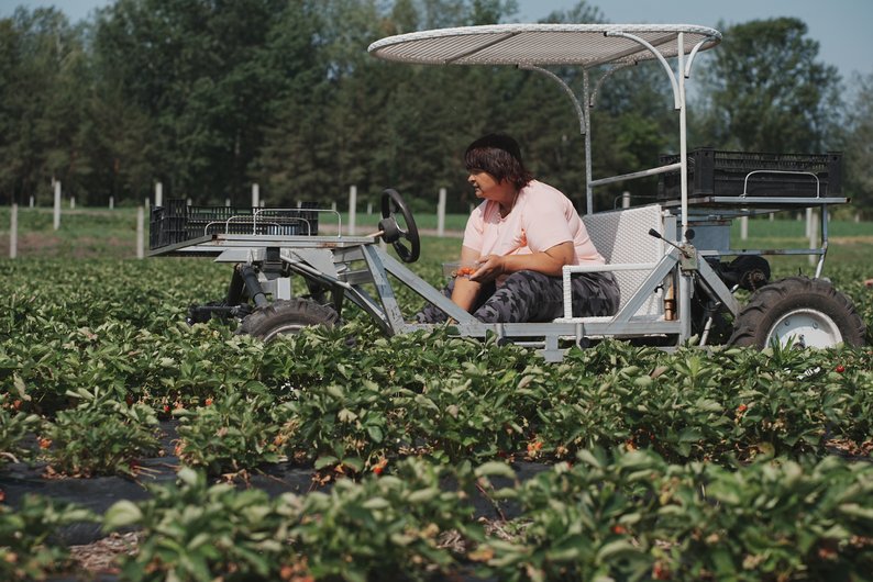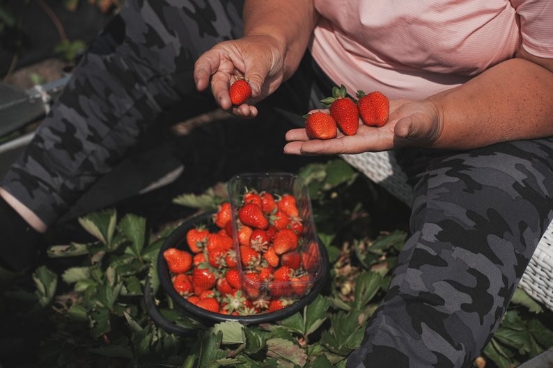 Полуниця, яку на своїх полях вирощує Світлана Горбатенко з чоловіком, Вільхуватка, Харківська область, червень 2025 року. Суспільне Харків/Вікторія Якименко