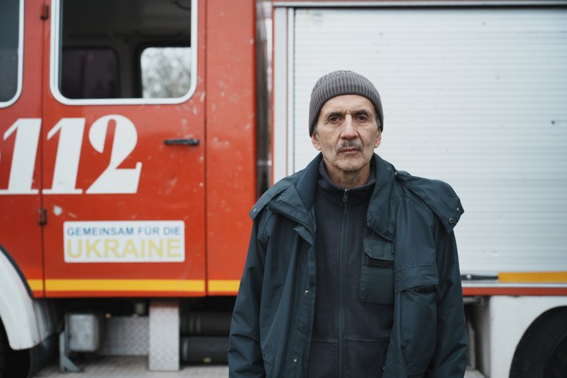 Анвер Мовсумов у будівлі пожежної охорони в Докучаєвському, 5 листопада 2025. Суспільне Харків/Вікторія Якименко