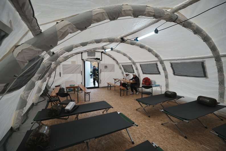 32 багатоквартирні будинки залишилися без централізованого опалення. Це майже три тисячі мешканців. Сьогодні температура дозволяє існувати без централізованого опалення, але люди відчувають дискомфорт, і вони повинні відчувати, що про них турбуються. У нас є сім'ї маломобільні, є сім'ї з маленькими дітьми, тому було розгорнуто в селищі Докучаєвському два такі пункти. Там працює також кухня — є гарячі напої, чай, кава, і пункти обігріву, намети, де можна підійти, зігрітися й отримати інформацію щодо надзвичайної ситуації.